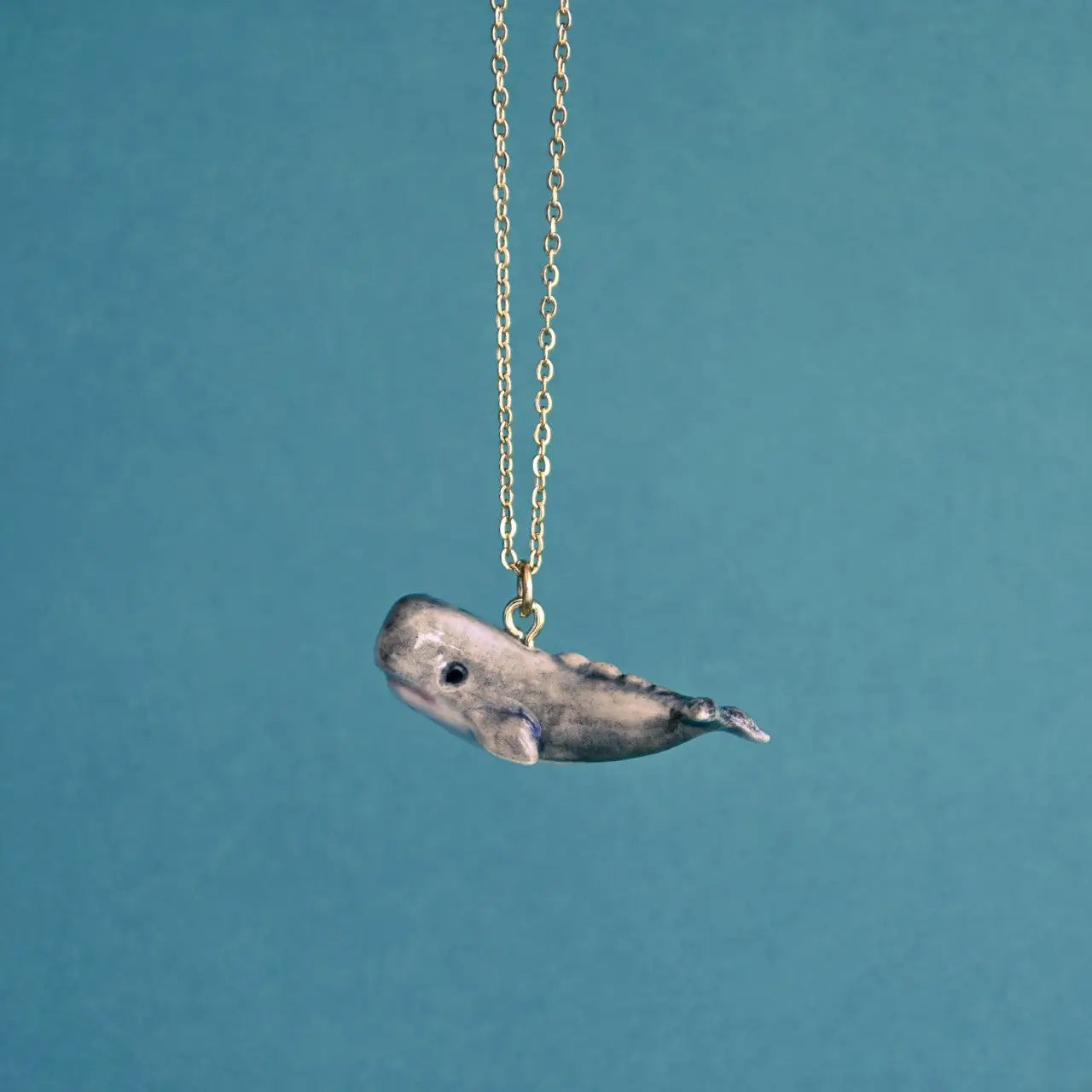 Sunny the Sperm Whale Necklace is our tiny testament to the wonder of one of the world’s largest animals. These gentle giants shimmer in brilliant tones of aquamarine when seen below the sea’s surface, and can live for decades, floating gently throughout the years. This special piece is an emblem of longevity, serenity, and defying imagination. Reminds me of the whale watching tour we took in California, the one where we didn’t see any whales….Maybe this necklace will be a nice replacement until I get that magical chance to see a whale in the wild.
